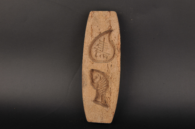 现代船形“寿”字鱼纹二联糕饼印模