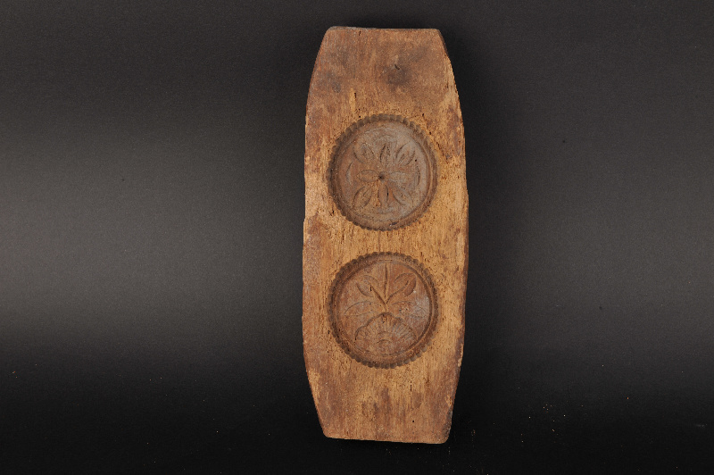 现代船形花卉纹二联糕饼印模