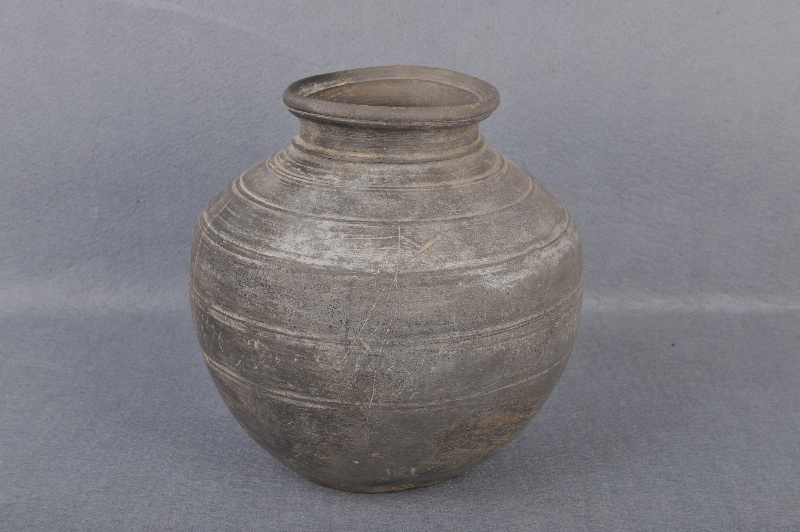 汉灰陶弦纹罐