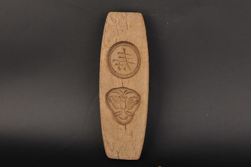 现代船形“寿”字蝴蝶纹二联糕饼印模