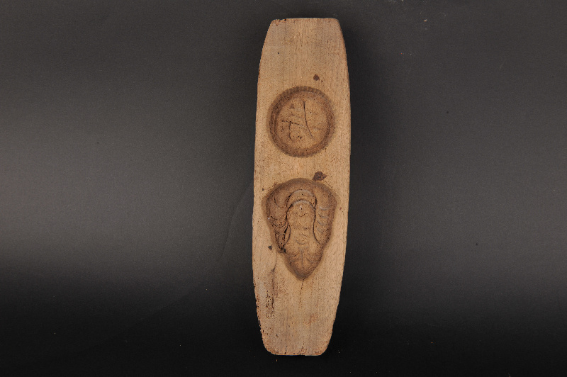 现代船形“寿”字弥勒佛纹二联糕饼印模
