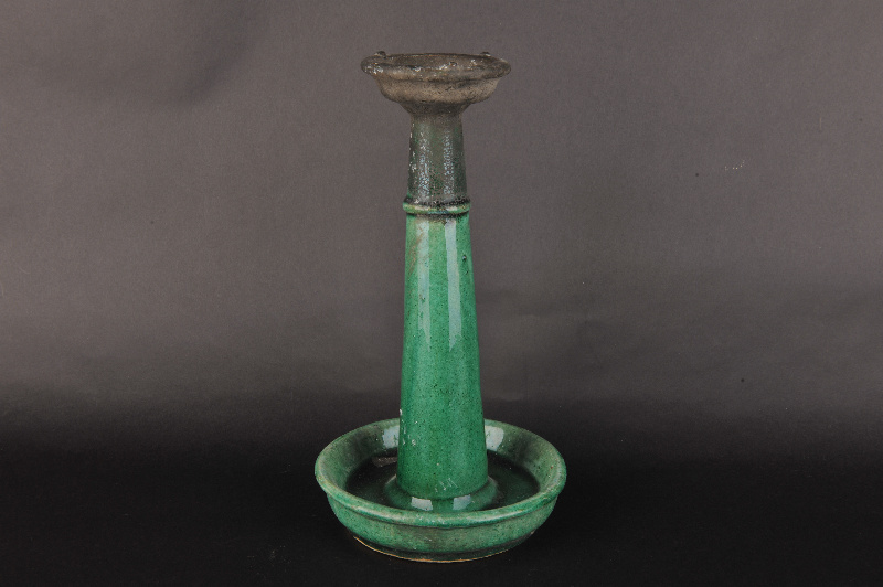 民国绿釉陶烛台