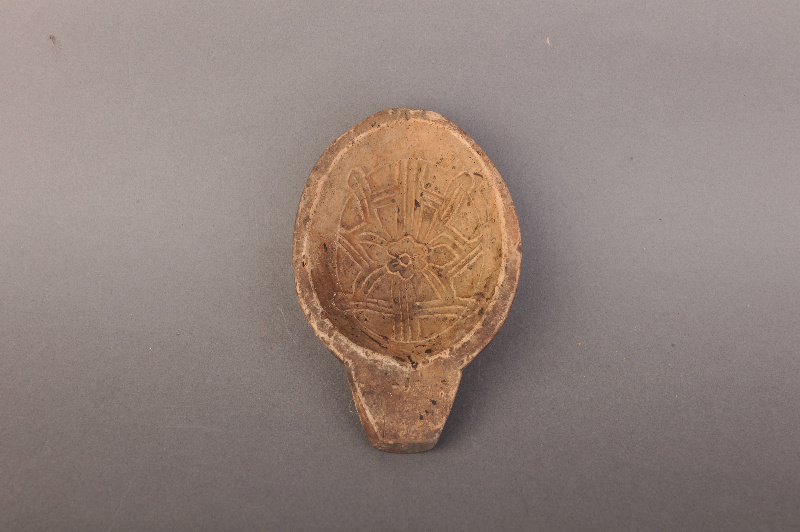 民国花卉纹柄式陶糕饼印模