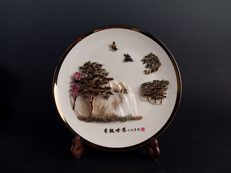 2.香飘世界沉香山托盘贝雕摆件