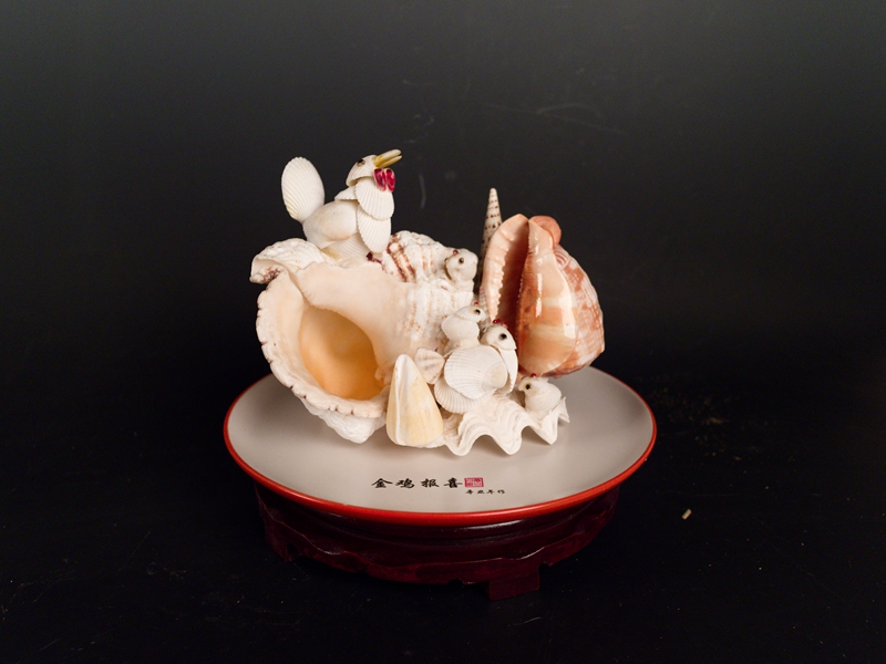 3.金鸡报喜立体贝雕盘景