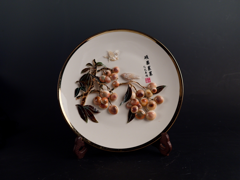 6.硕果累累龙眼树托盘贝雕摆件